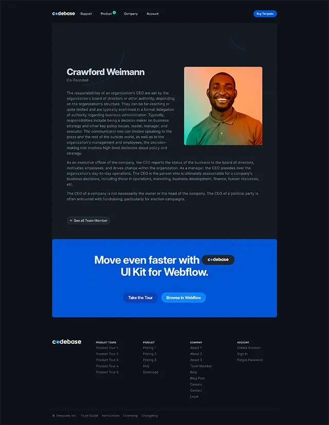 A multipurpose template crafted for technology and software businesses. In dark mode with vivid gradients and shapes.